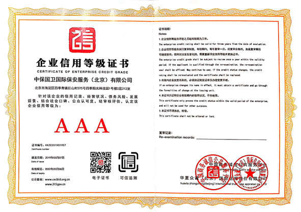 企業(yè)信用等級(jí)證書(shū)AAA級(jí)